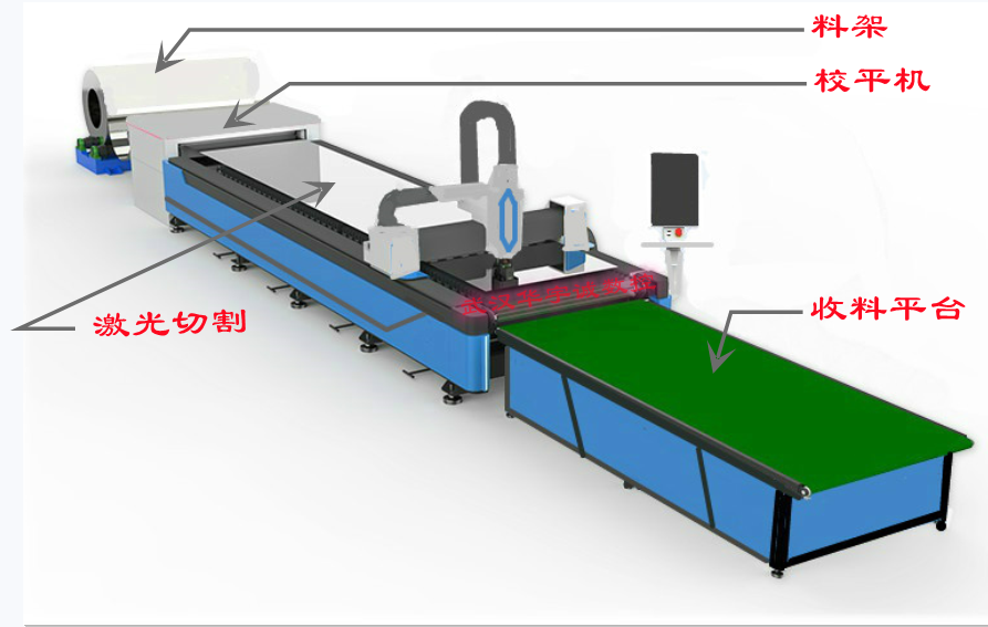 卷料備展開后,經(jīng)過了整平這一工序,材料內(nèi)應(yīng)力便得到了大部分的消除,在通過系統(tǒng)控制的激光切割頭在激光切割平臺上進(jìn)行的三維運(yùn)動切割,實(shí)現(xiàn)對金屬帶料的自動落料。